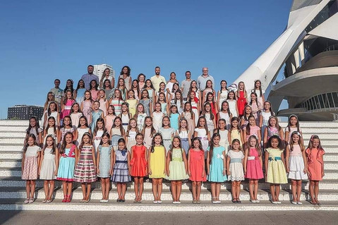 Amb l'arribada de les candidates majors, s'han desplaçat cap a les majestuoses escales del Palau Reina Sofia per fer-se fotografies de grup, amb el jurat, i també amb les seues companyes candidates majors.